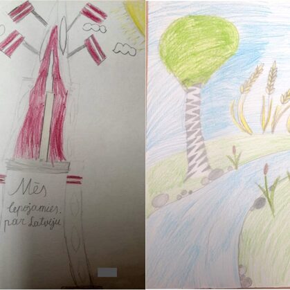 Skolēnu darbi, sveicot Latviju dzimšanas dienā.