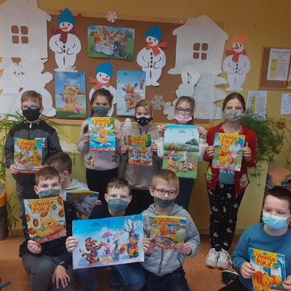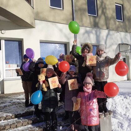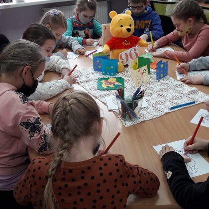 Dagdas vidusskolas skolēni svin Vinnija Pūka dzimšanas dien