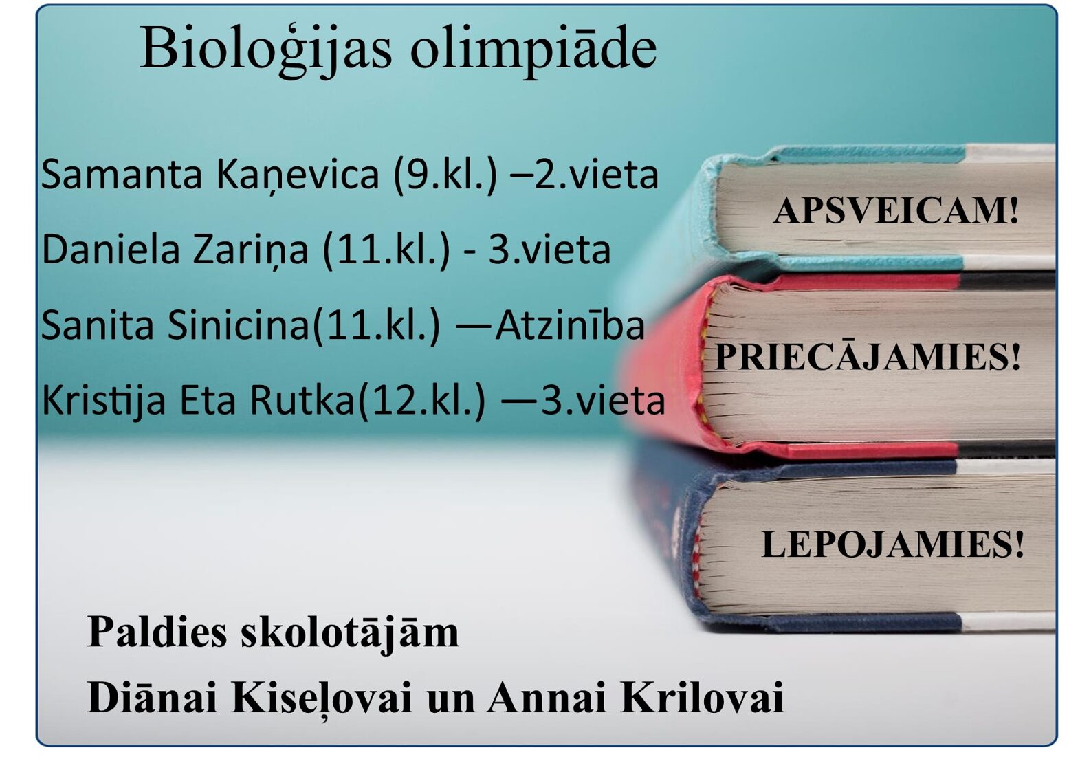 5. Krāslavas un Dagdas novadu apvienības 9.-12.klašu bioloģijas olimpiādes rezultāti /25.11.2016./