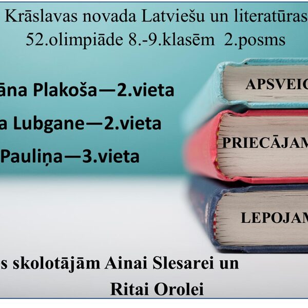 10. Krāslavas un Dagdas novadu apvienības 8.-9.kl. Latviešu valodas un literatūras 43. olimpiādes rezultāti/30.01.2017./