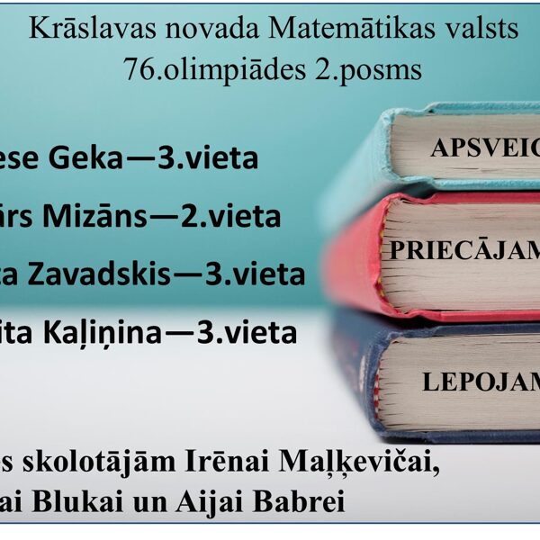 7.Krāslavas un Dagdas novadu apvienības Latviešu valodas un literatūras 11.-12.klašu olimpiādes rezultāti /16.01.2017/